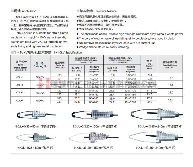 耐张线夹 NXJL系列耐张线夹 NXJL系列楔型绝缘耐张线夹 耐张线夹-铝绞线架空绝缘电缆用